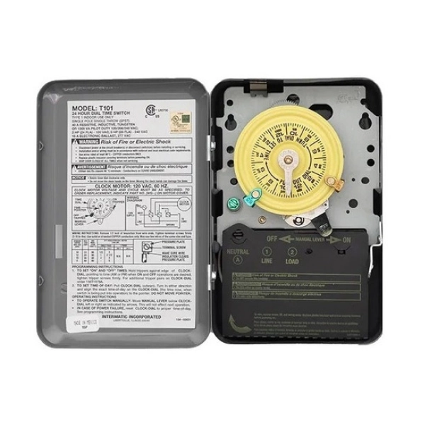 Los Timers Intermatic de 24 Horas de uso pesado controlan una sola carga.   Son para usarse con Bombas, Iluminación o Calentadores para Alberca. Manejan las cargas de motor más altas que cualquier otro equipo en la industria y pueden efectuar 12